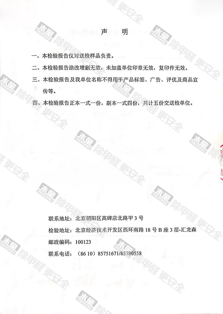 木童除甲醛地板蠟檢測報告