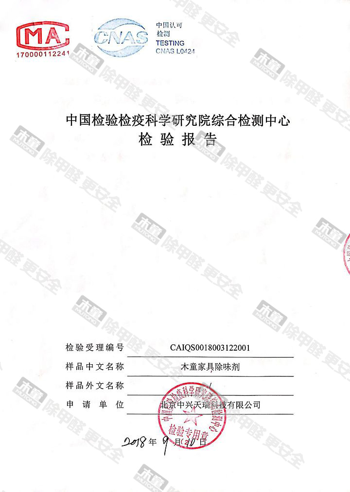 家具除味劑安全性檢測報告