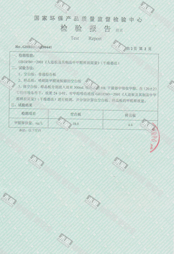 木童除甲醛地板蠟檢測報告